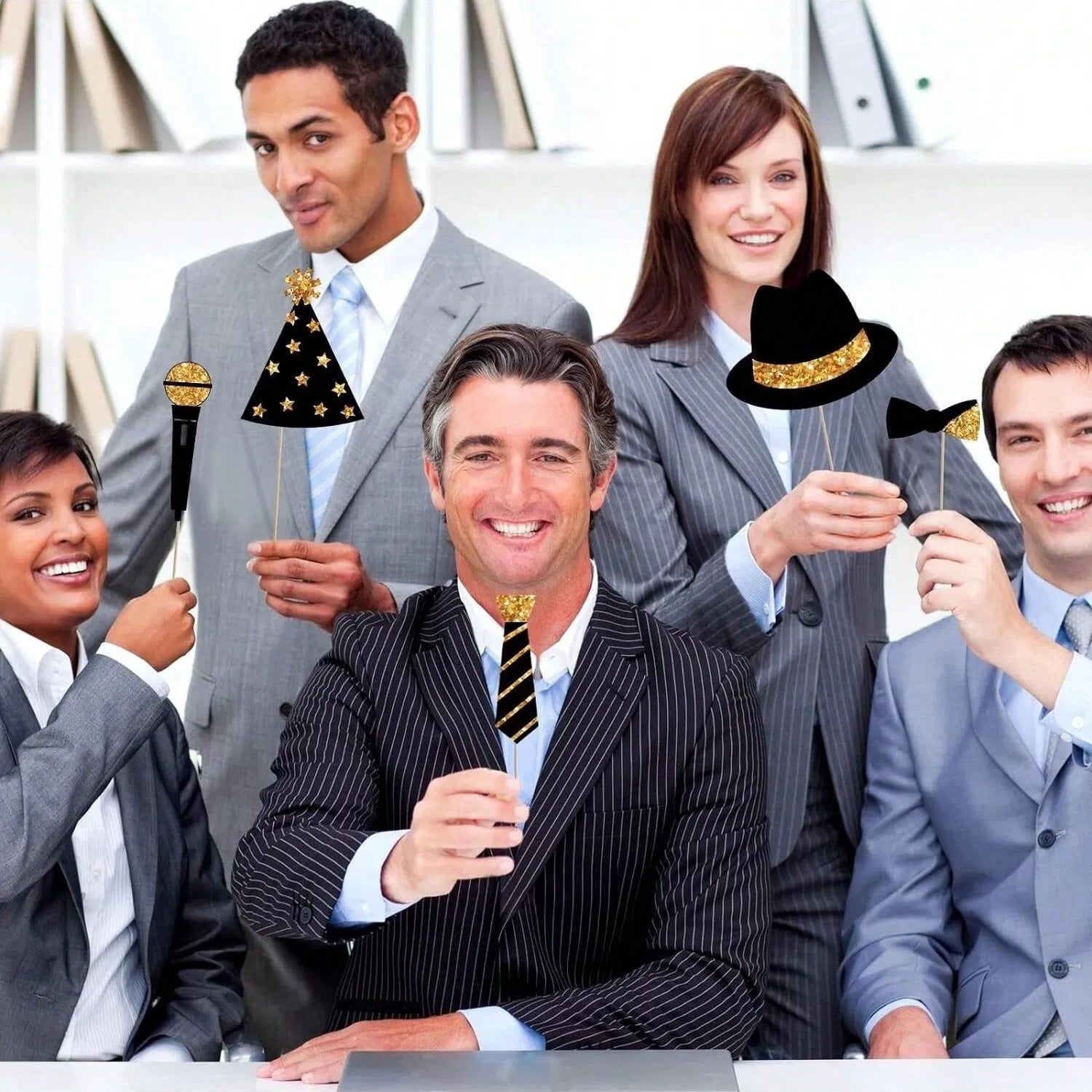 24 Pieces Party Photo Booth Props For Birthday Weddings Graduation Prom Party Supplies Mix Of Hats, Lipstick, Tie, Crowns Golden,Christmas